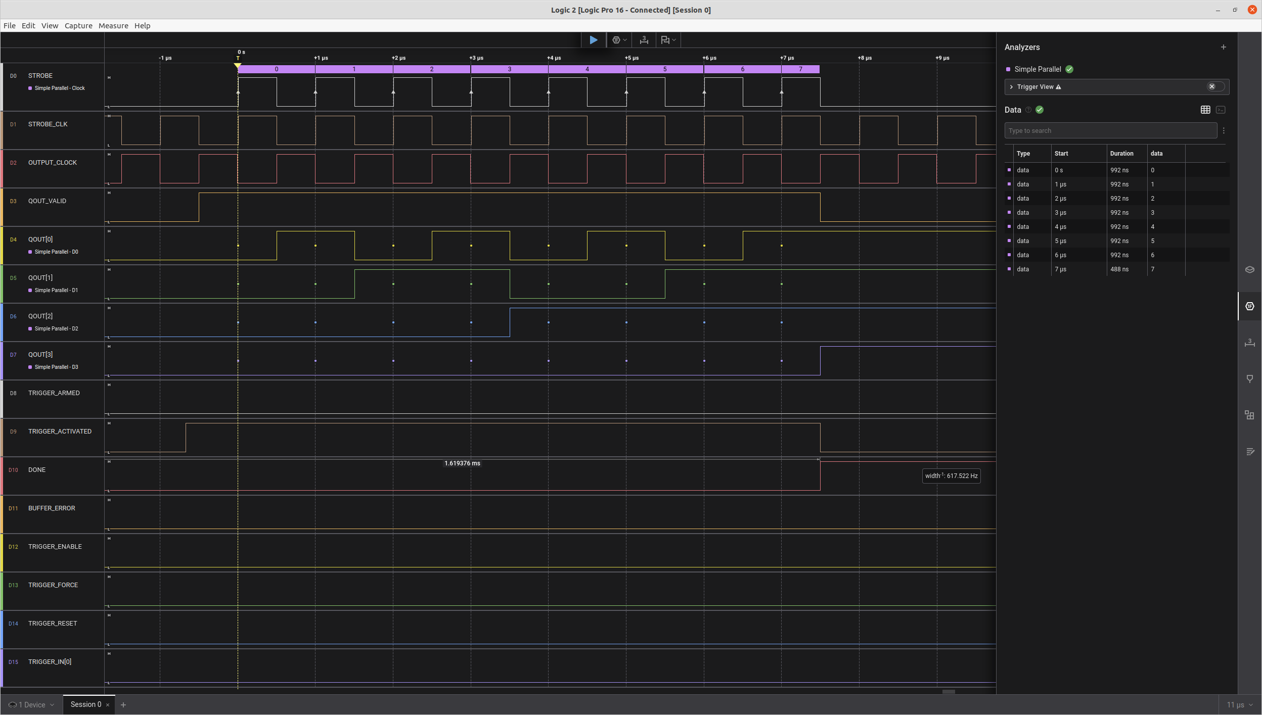 | 7 | D9 | trigger_activated | Triggered and data is being streamed out | |